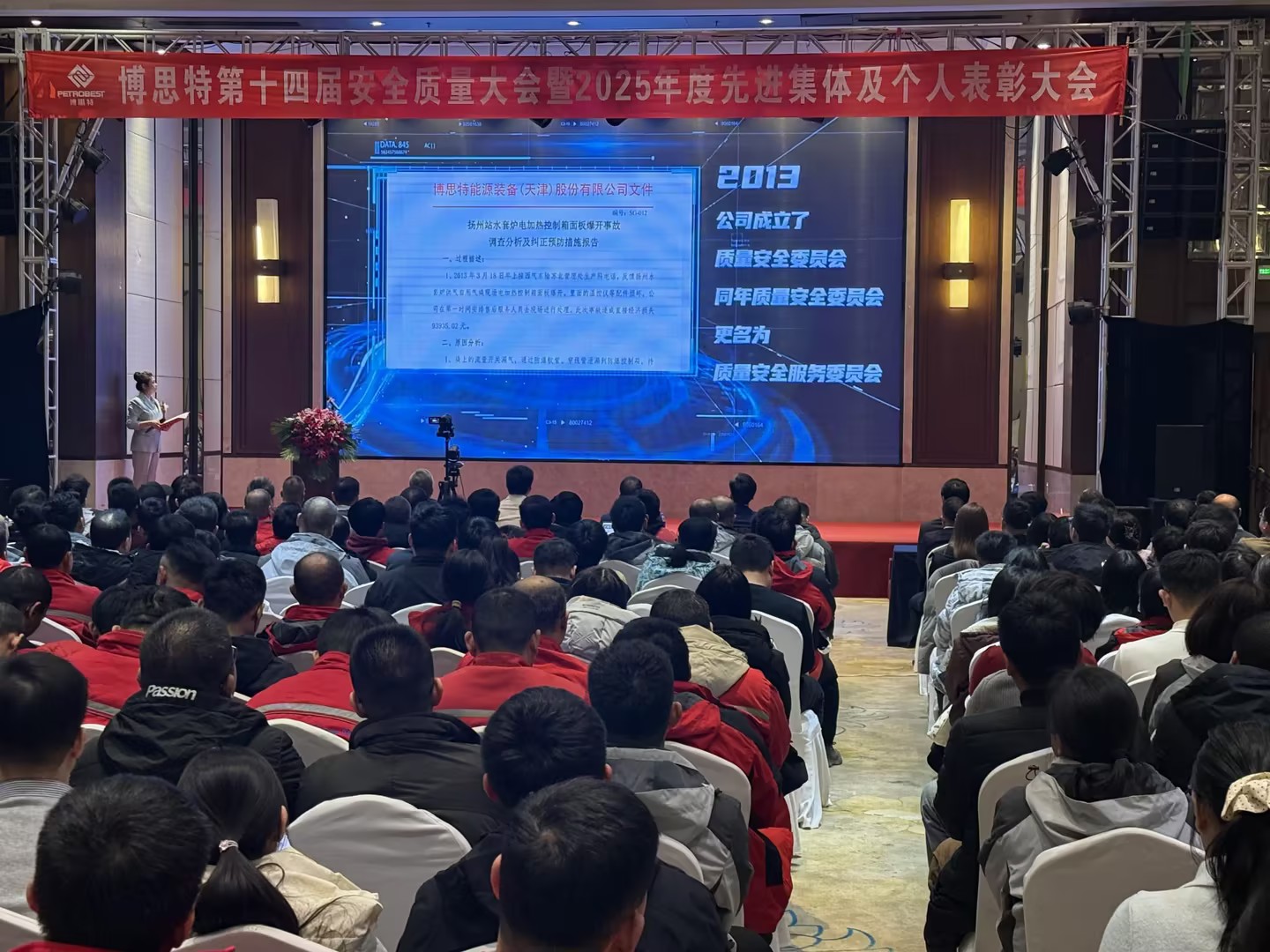 大会开篇,全体参会人员共同观看《安全质量大会十三周年纪录片》。影片循着历届大会的时间脉络,串联起公司在安全质量领域的探索与坚守,通过真实案例复盘、关键节点回顾,让“安全第一,质量第一” 的博思特文化深植于心。