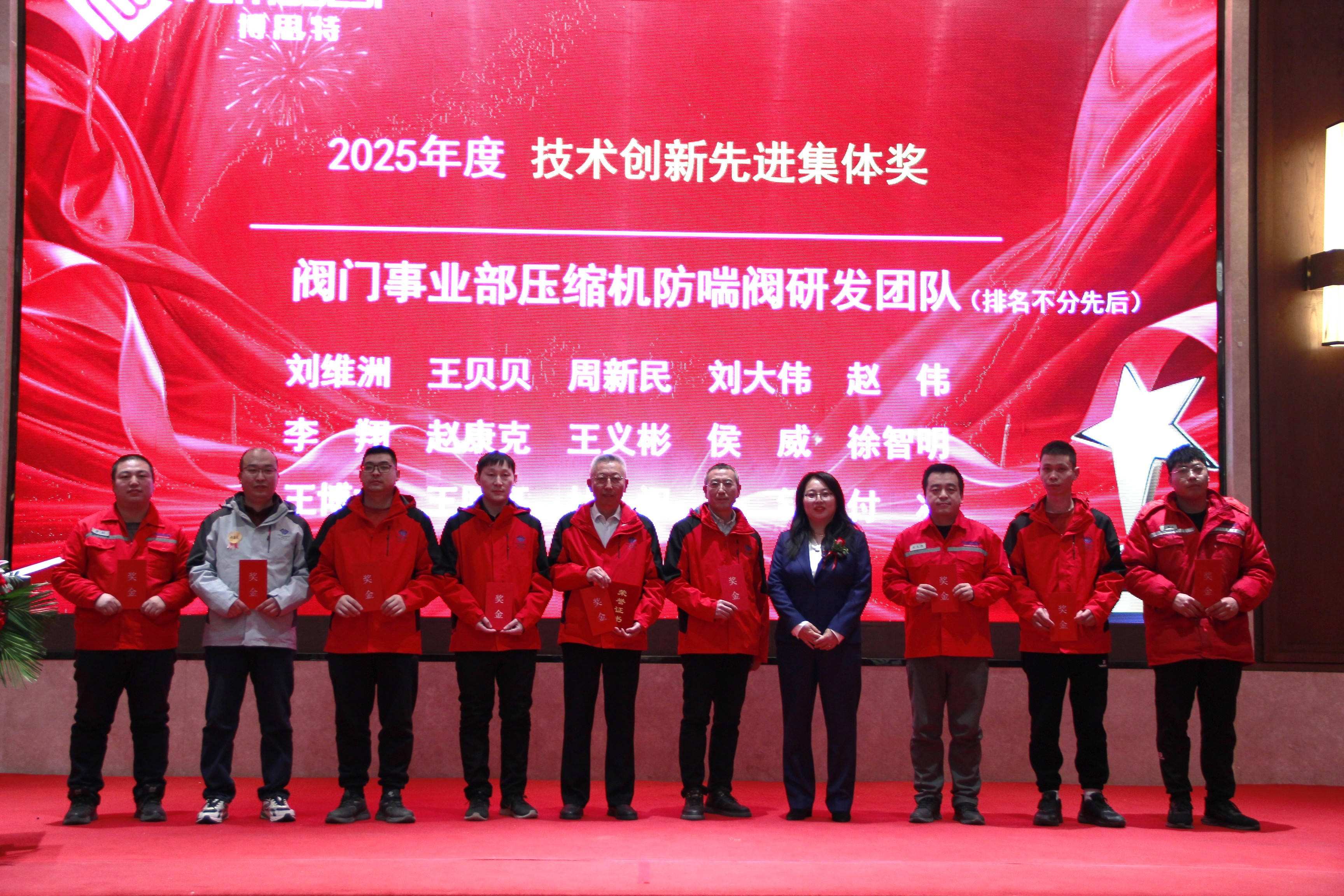 榜样引领方向,实干铸就辉煌。作为本次大会的重要环节,2025年度先进集体及个人表彰仪式正式开启。本次表彰覆盖行政、研发、装备、阀门、设计、营销、财务、数智化等多个核心部门与岗位,聚焦安全质量服务、技术创新、市场开拓、降本增效四大维度,精准挖掘各条战线的突出贡献者。受表彰的个人与团队中,有践行改善即创新的一线员工,有统筹攻坚、高效推进项目的管理带头人,有精于成本管控、为公司提质增效的业务能手,有勇闯市场、开拓新赛道的营销精英,更有技术创新、协同创效的优秀项目组与安全质量服务先进集体。
